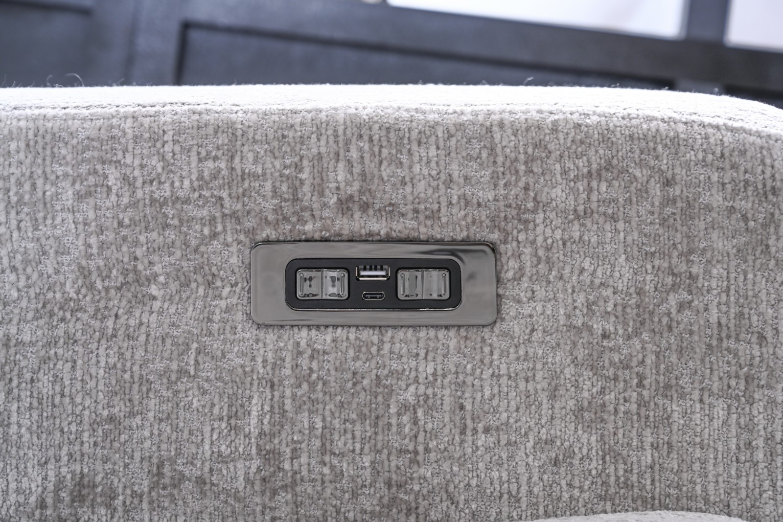 ソファのサイドには電動用スイッチと